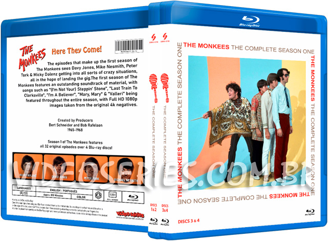 Título Original: The Monkees Título Brasileiro: Os Monkees Produção: 1965/68 (EUA) - Cor Elenco: Davy Jones, Micky Dolenz, Peter Tork e Michael Nesmith Episódios: 32 Formato: 2 Box Amaray com 2 discos cada (BD-R) Legendas: Inglês Áudio: Português (Mono - Dublagem Original); Inglês (Mono) Vídeo:Standard 1.33:1 [4:3] Imagens Remasterizadas HD 1080p - Codec: MPEG-4 AVC Dublagem: AIC - São Paulo Extras: Menus Interativos, Seleção de Episódios. Duração: Aprox. 810 min. Região: A (América Latina) Lançamento Vídeo Séries: Outubro/2025 OBS1: Alguns episódios podem ter pequenos trechos sem dublagem. OBS2: Os episódios; 5, 10, 28 e 29 não possuem dublagem. Eles são apresentados com áudio original inglês e legendas automáticas em português.